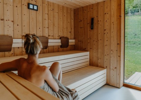 Das Saunahaus aus heimischem Holz fügt sich harmonisch in den Garten ein, während der adults-only Saunabereich am Seerosenteich pure Entspannung verspricht. Bio-Kräutersauna, Dampfbad und finnische Fichtensauna verwöhnen Sie mit den Düften von Rosmarin und Zirbel. Eine Tee-Lounge und Panorama-Ruheräume mit kuscheligen Relax-Kojen runden den Wellness-Bereich ab. Im beheizten Indoor-Naturpool schwimmen Sie mit Blick auf tanzende Libellen. Der Outdoor-Kneippbereich und Barfußpfad verbinden Sie direkt mit der Natur. Massagen und Naturkosmetik-Anwendungen ergänzen das Spa-Erlebnis.